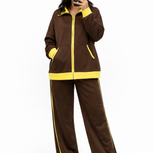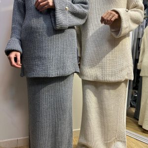 La veste croisée avec fermeture à bouton unique met en valeur la silhouette tout en offrant un style chic et minimaliste. Le pantalon taille haute, à la coupe ample et élégante, assure une allure élancée et un mouvement naturel.