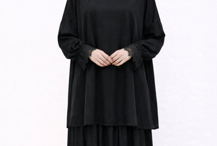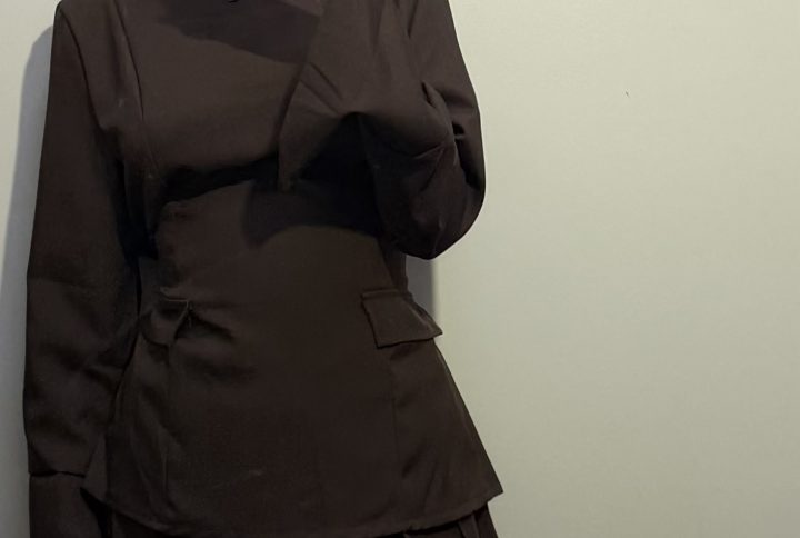 Les manches amples et le tombé aérien du tissu offrent une silhouette gracieuse et élégante, tandis que la taille subtilement marquée met en valeur les formes avec douceur. Sa teinte beige nude, chic et intemporelle, en fait une pièce idéale pour les grandes occasions.